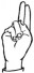 На ћирилици написано КОСТАДИН НИКОЛЕНЏИЋ састоји се из 18 слова [?]. Исписано ћириличном једноручном азбуком за глувонеме: